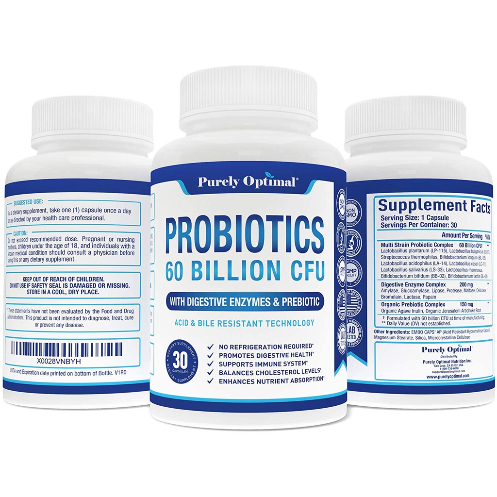 Purely Optimal Premium Probiotics 60 Billion Cfu 30 Capsules Purely Optimal Health Supps Brands Digestive Health